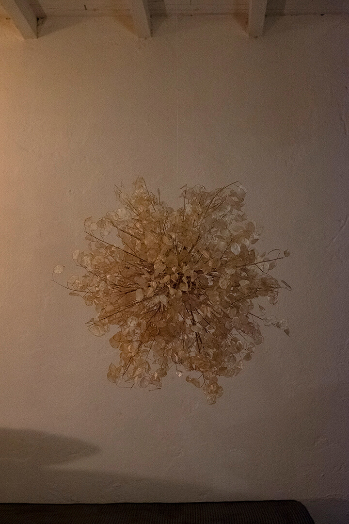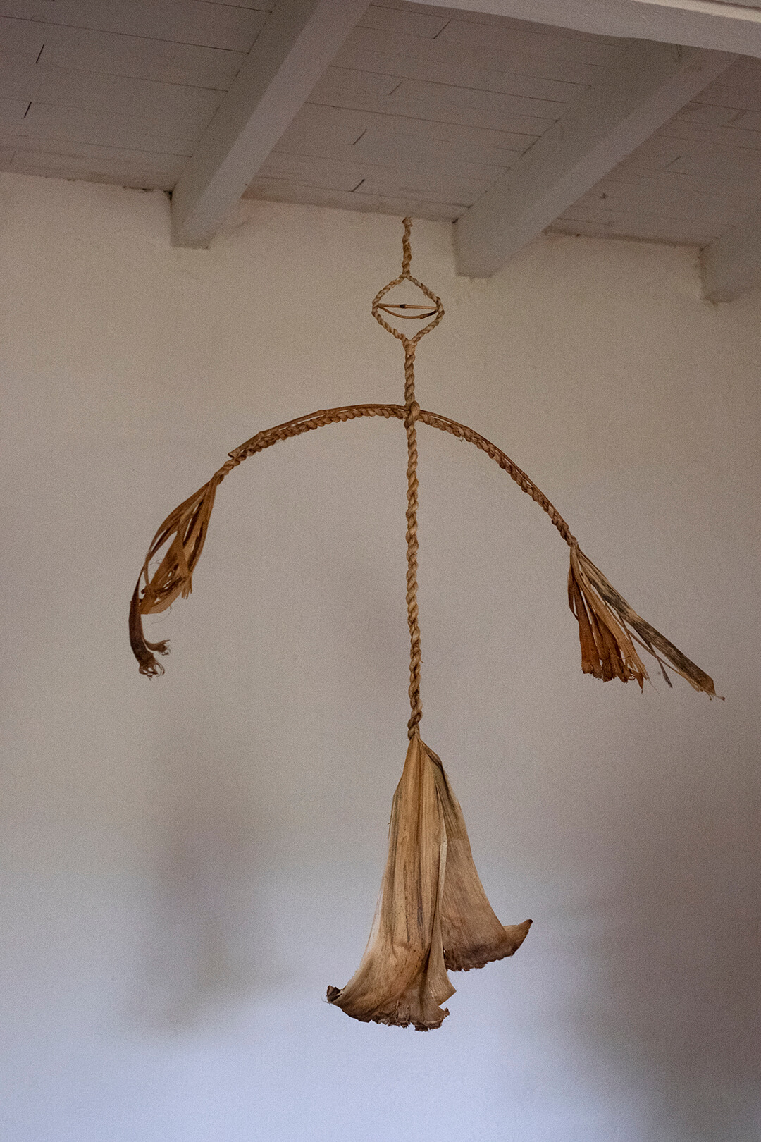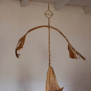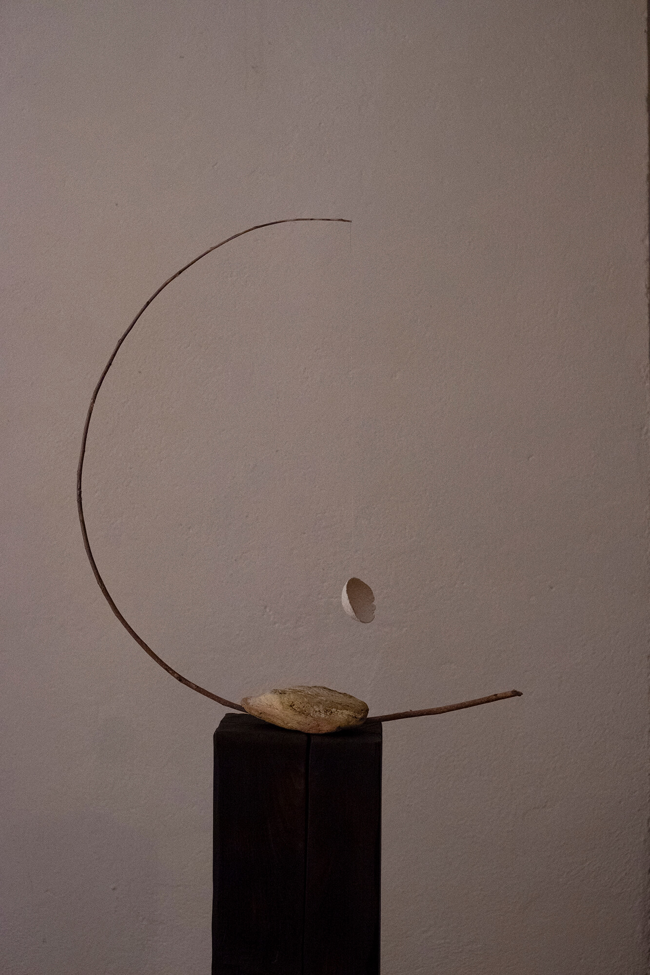 Mon geste vise à produire sans exploiter, à créer du lien et à révéler les forces invisibles à l’œuvre. Consommer peu, ramasser un caillou, un bâton ou une fleur, c’est préserver ma liberté et donner à voir la nature et l’ordinaire comme des trésors. Mes pièces naissent de l’assemblage, à la manière d’une cabane d’enfant, avec ce qui est là, à portée de main. Assembler, c’est faire dialoguer des mondes ; chercher l’équilibre, c’est faire tenir la beauté fragile, libre de se défaire avec le temps.