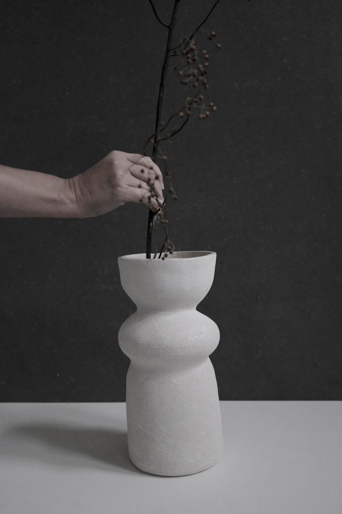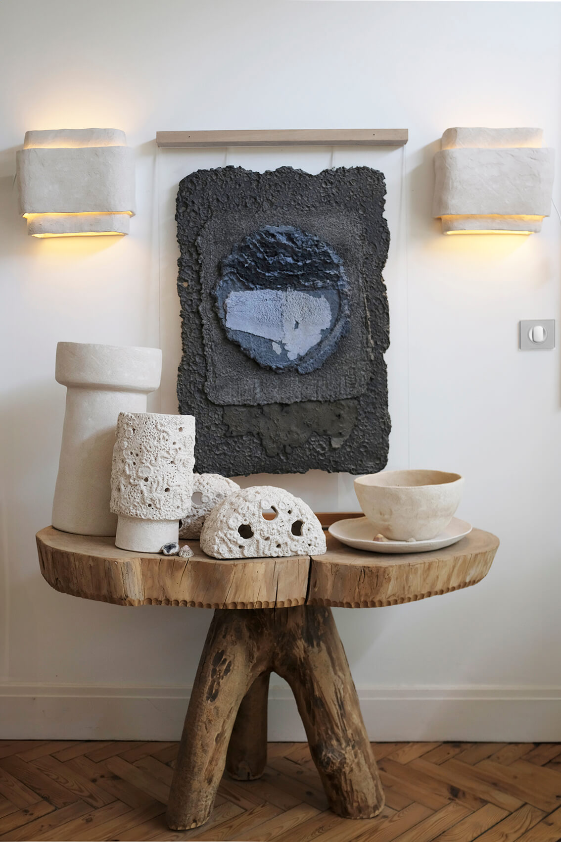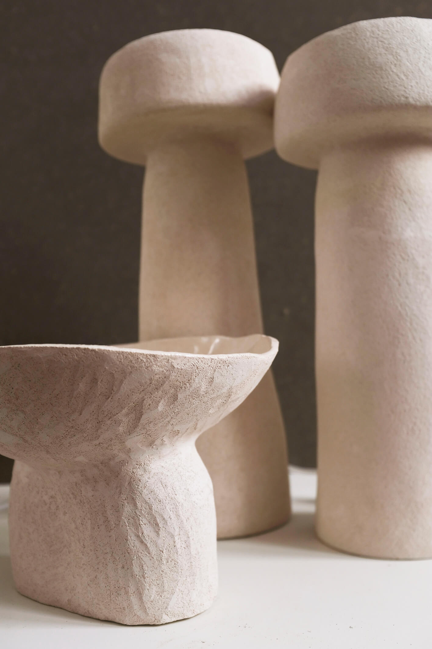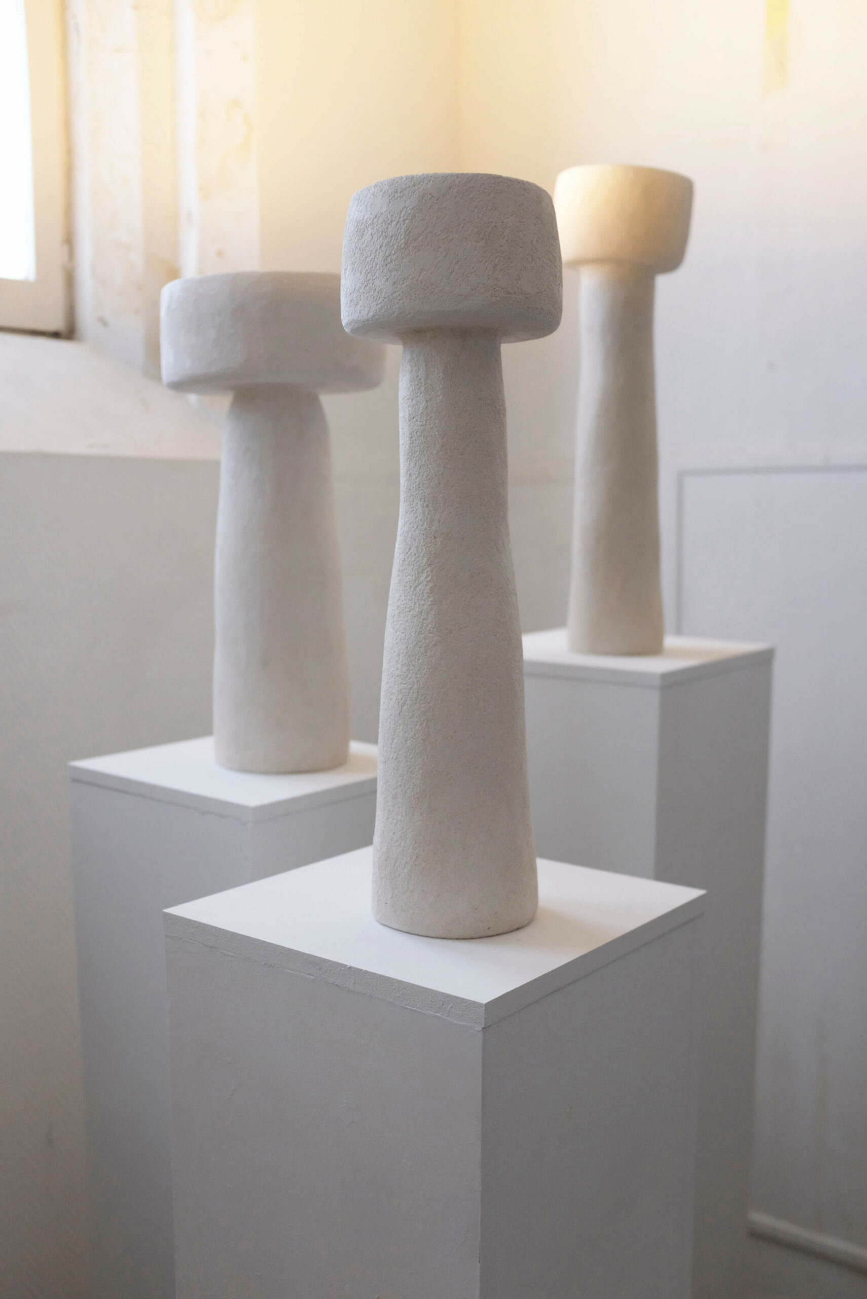 Juliette Desrumaux développe une pratique céramique née d’un besoin de rupture avec le rythme industriel et la logique de production de masse. Son travail s’inscrit dans un retour au geste, à la matière et au temps long. À travers la terre, elle explore une approche intuitive, brute et essentielle, où créer devient un espace de respiration, de silence et de reconnexion.