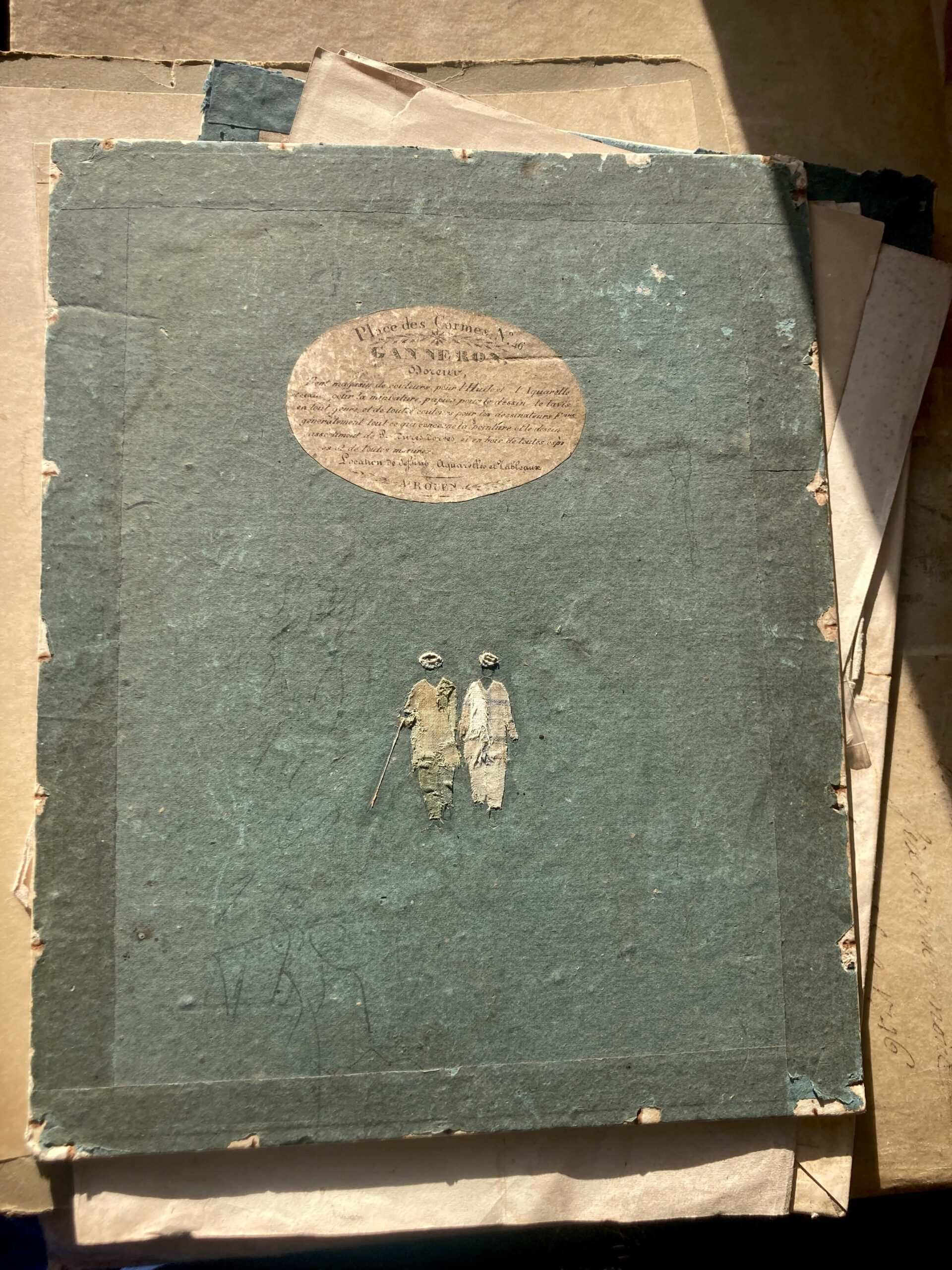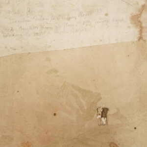 Une archéologie du sensible se tisse dans le geste de l’artiste : chaque papier ancien devient matière première et point de départ d’une œuvre offrant au spectateur une méditation sur le temps et la beauté de l’usure.